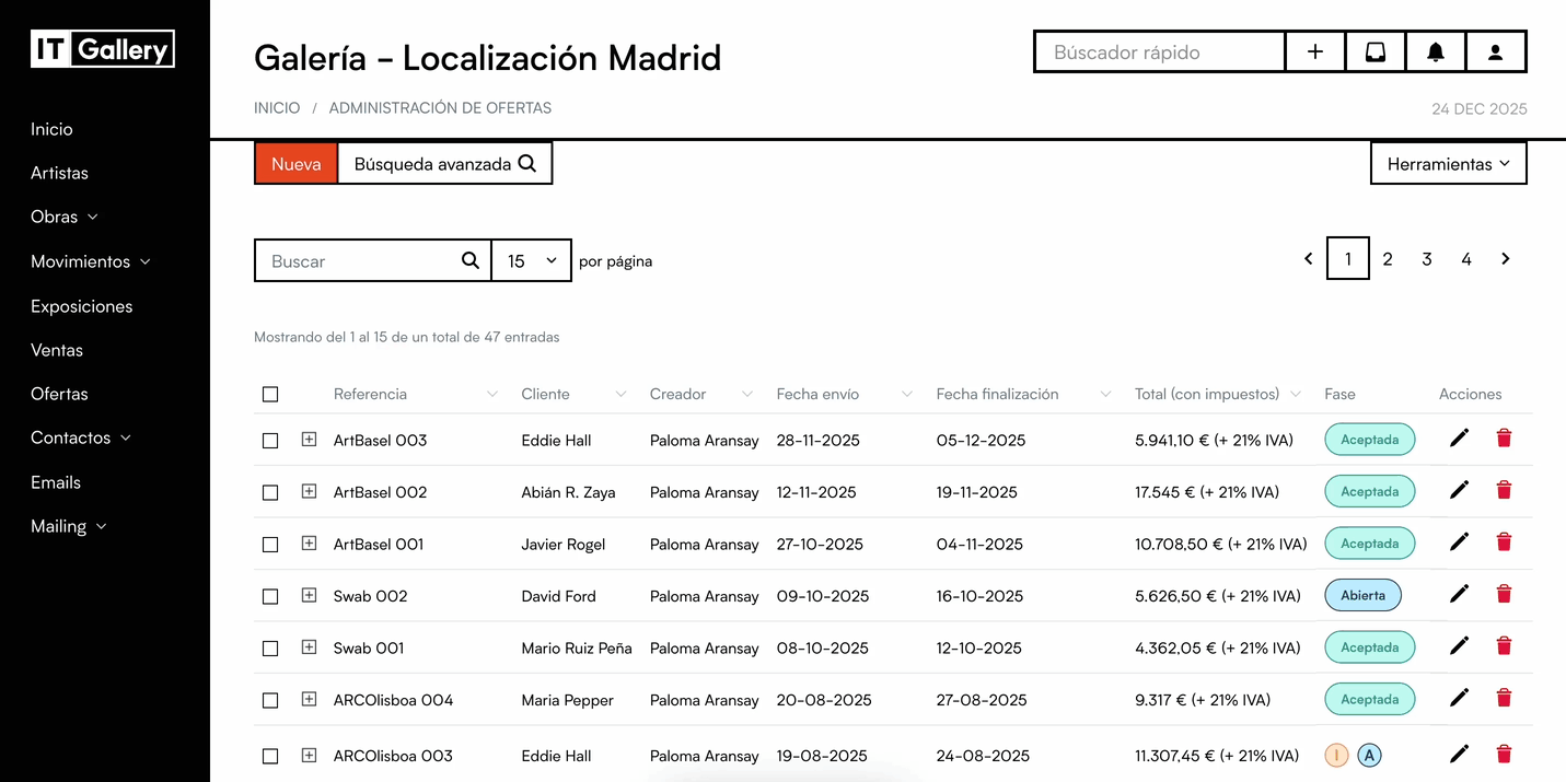 ITGallery te permite asociar a cada oferta un porcentaje de éxito para que dispongas de un registro interno de aquellas ofertas que tienen más probabilidad de ser aceptadas.