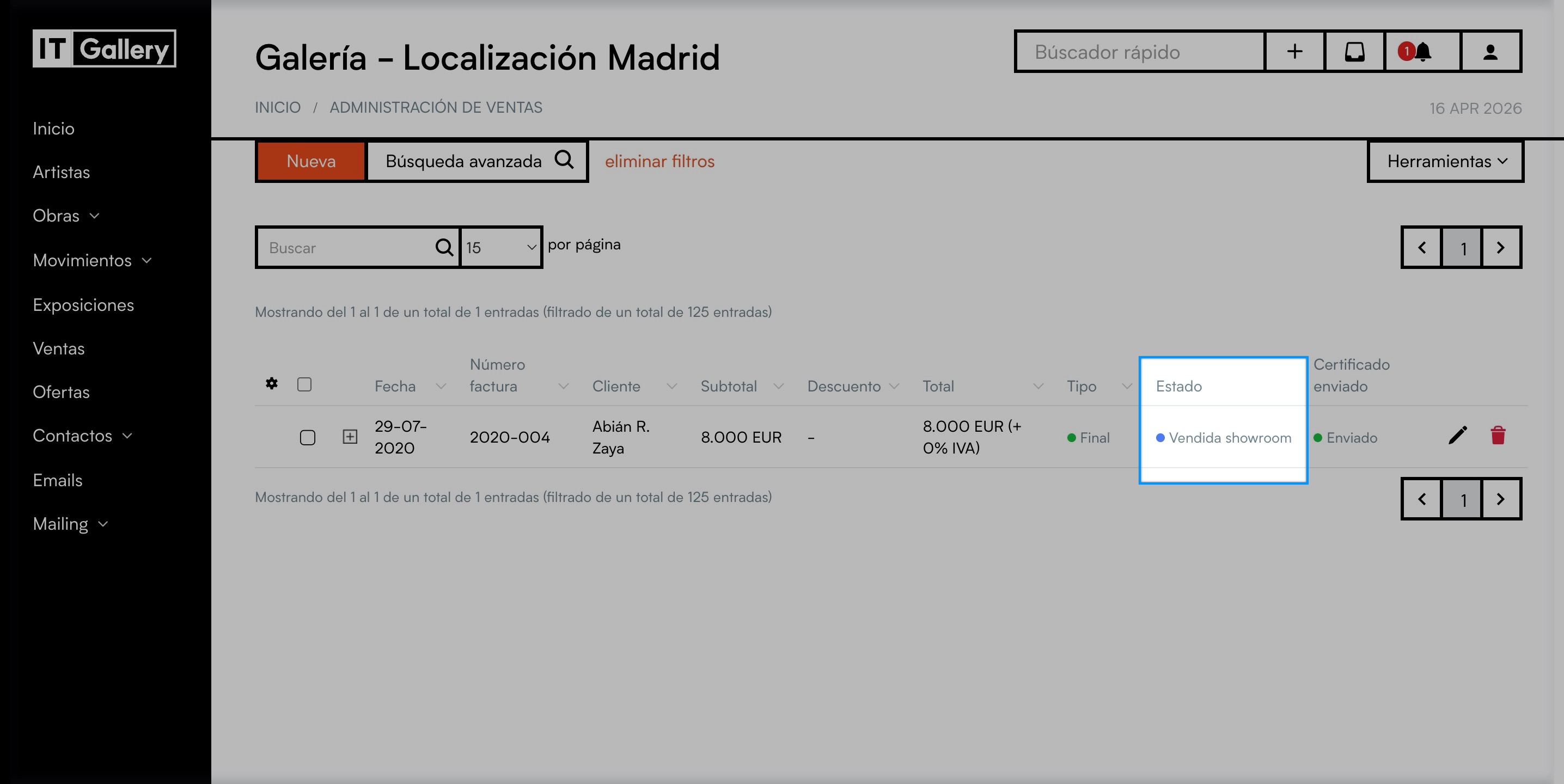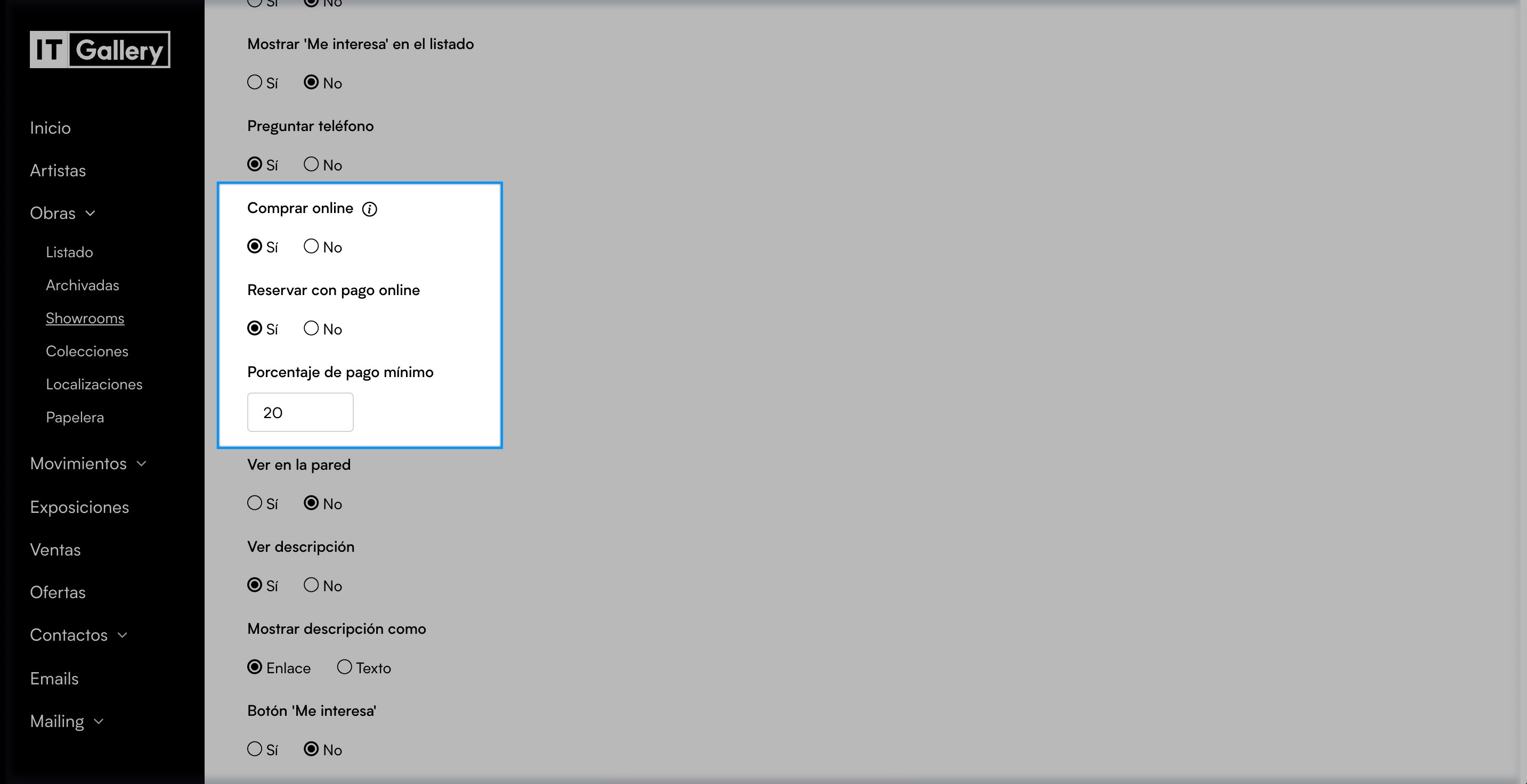 Puedes habilitar la compra o reserva de obras directamente desde un showroom para que tus clientes puedan adquirir piezas online de forma inmediata.