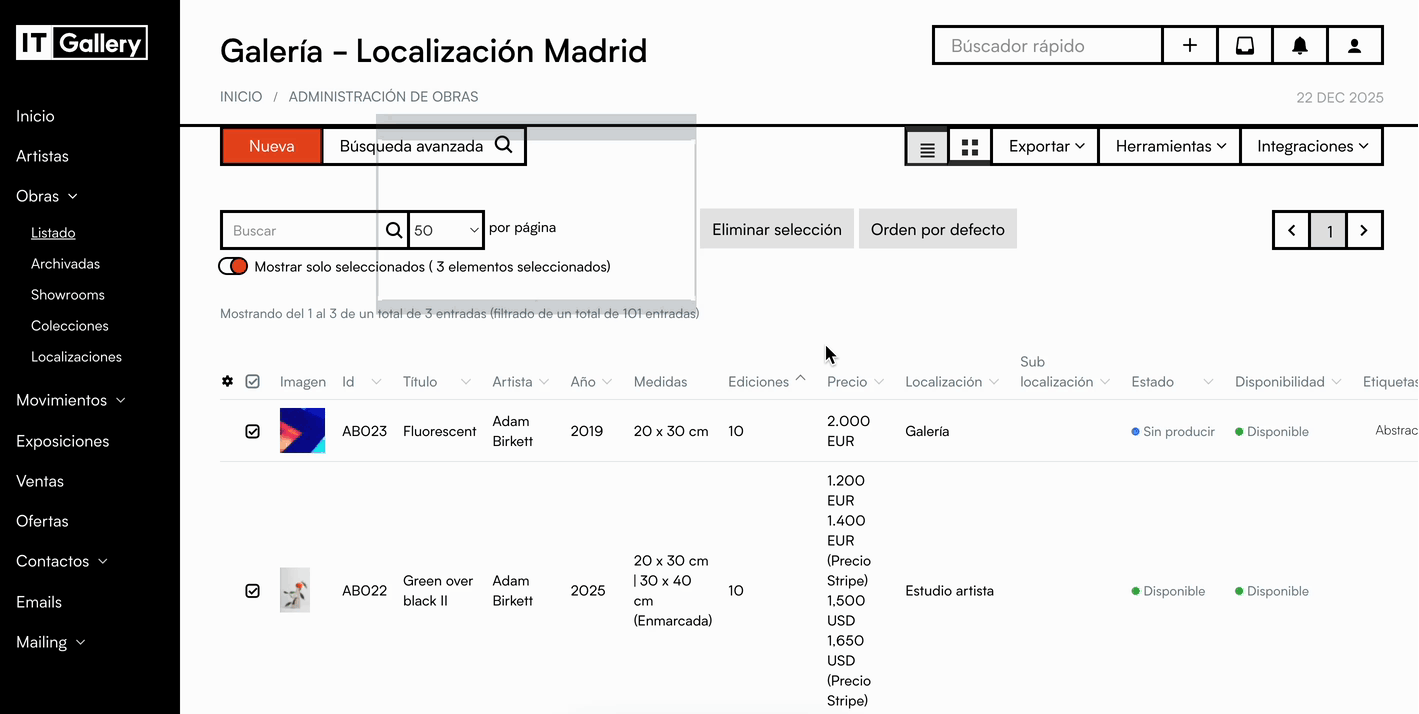 - En 'Listado', selecciona la obra cuyo estado de las ediciones quieres modificar