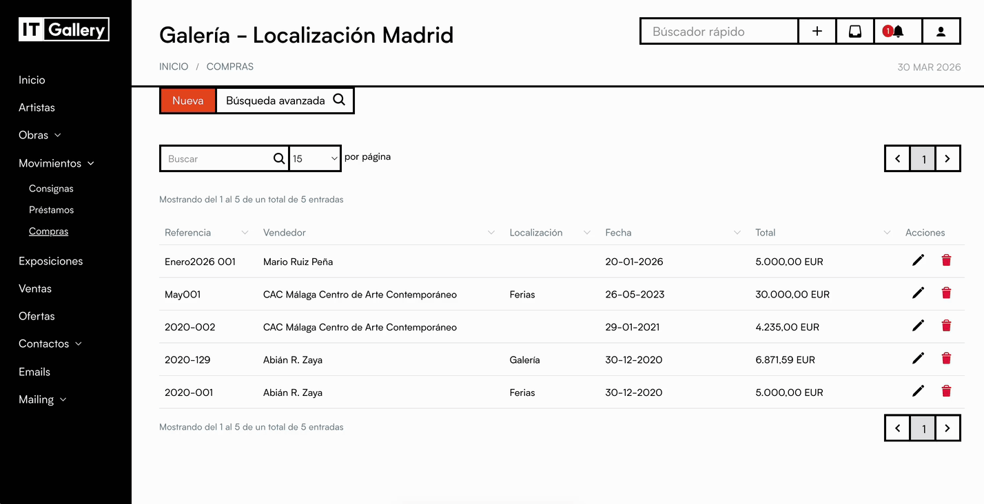 Recuerda que puedes editar los datos una vez creada pulsando en el icono con forma de lápiz desde el listado de compras.