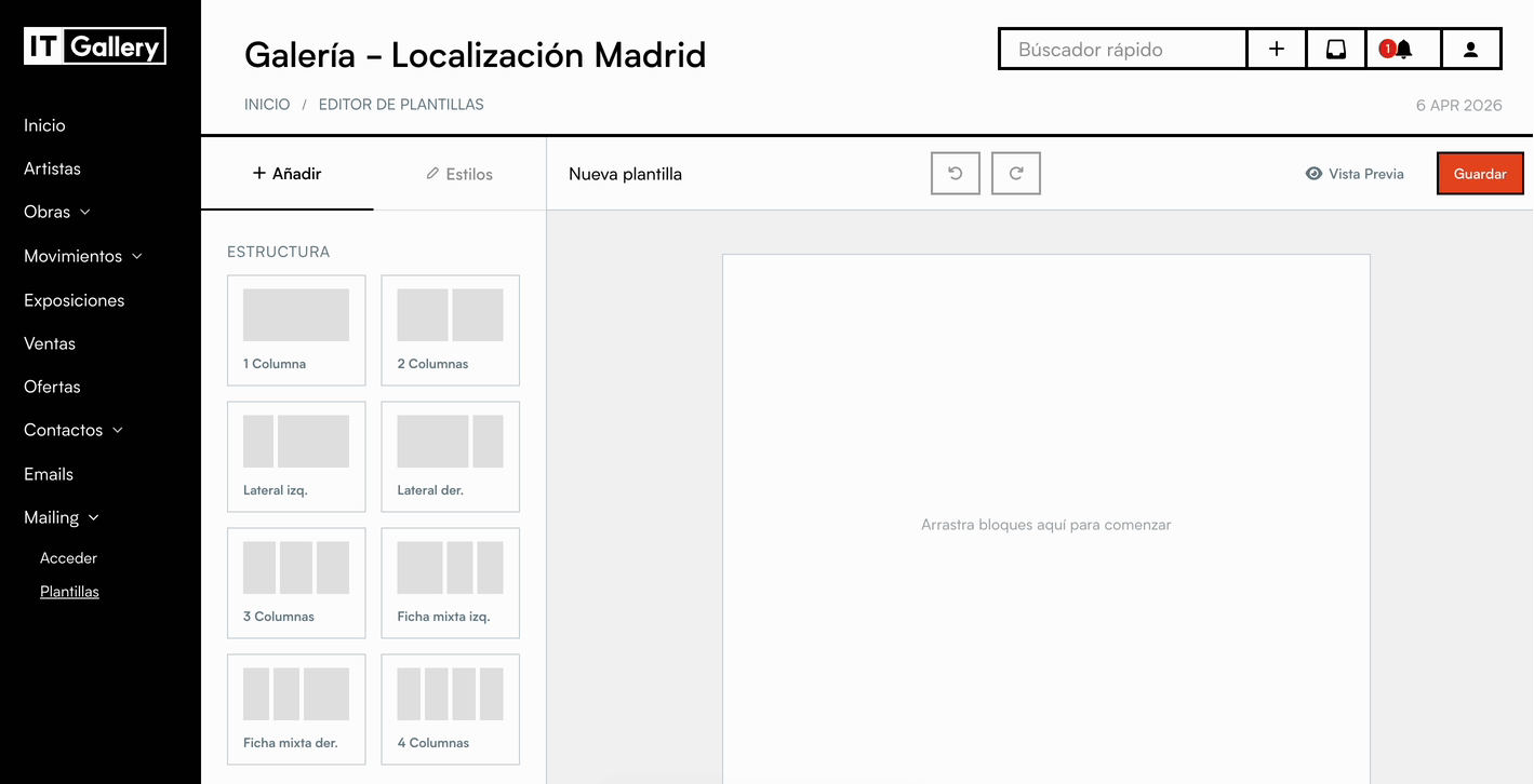 Recuerda que todas las plantillas de email se guardan también en la herramienta de envío de mailings, por lo que podrás utilizarlas y gestionarlas también desde ese apartado.