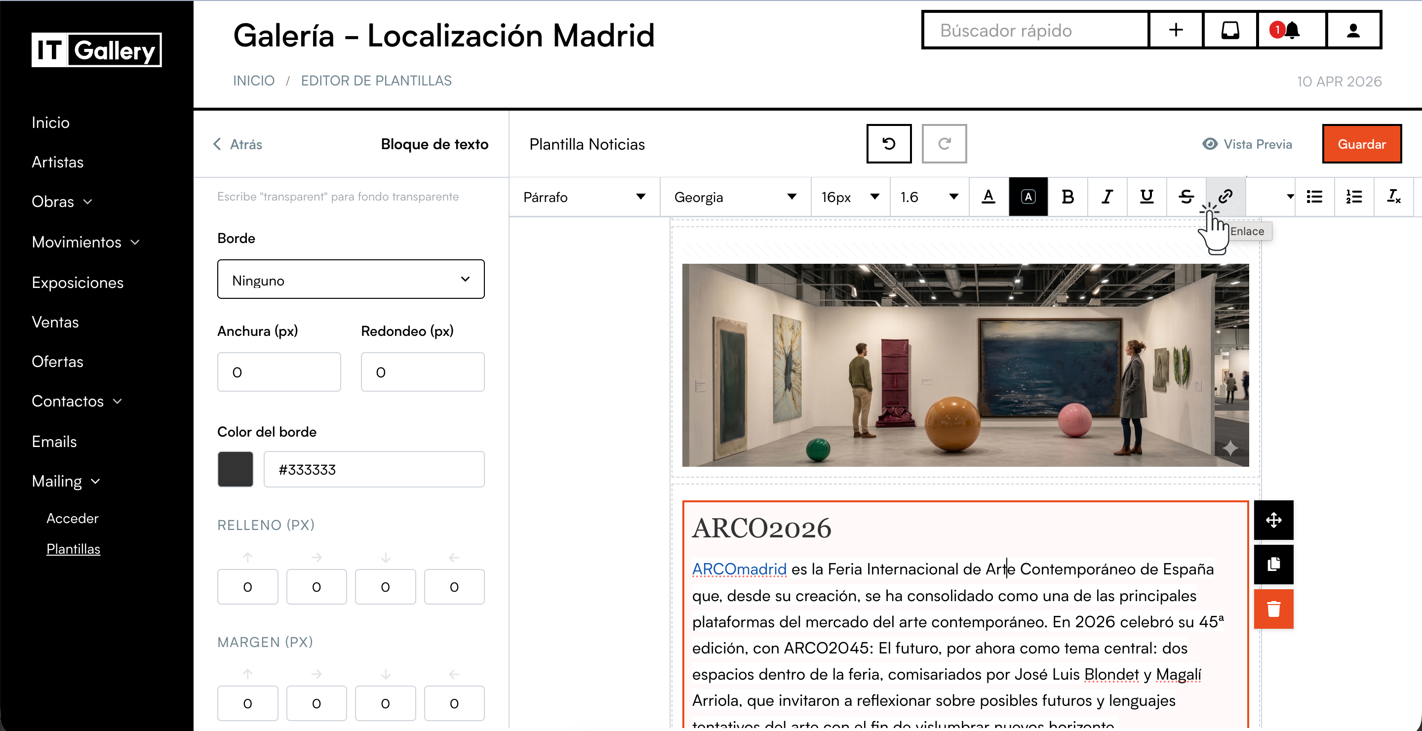 Puedes añadir enlaces dentro de un bloque de texto para dirigir a los destinatarios a una página web o recurso externo.