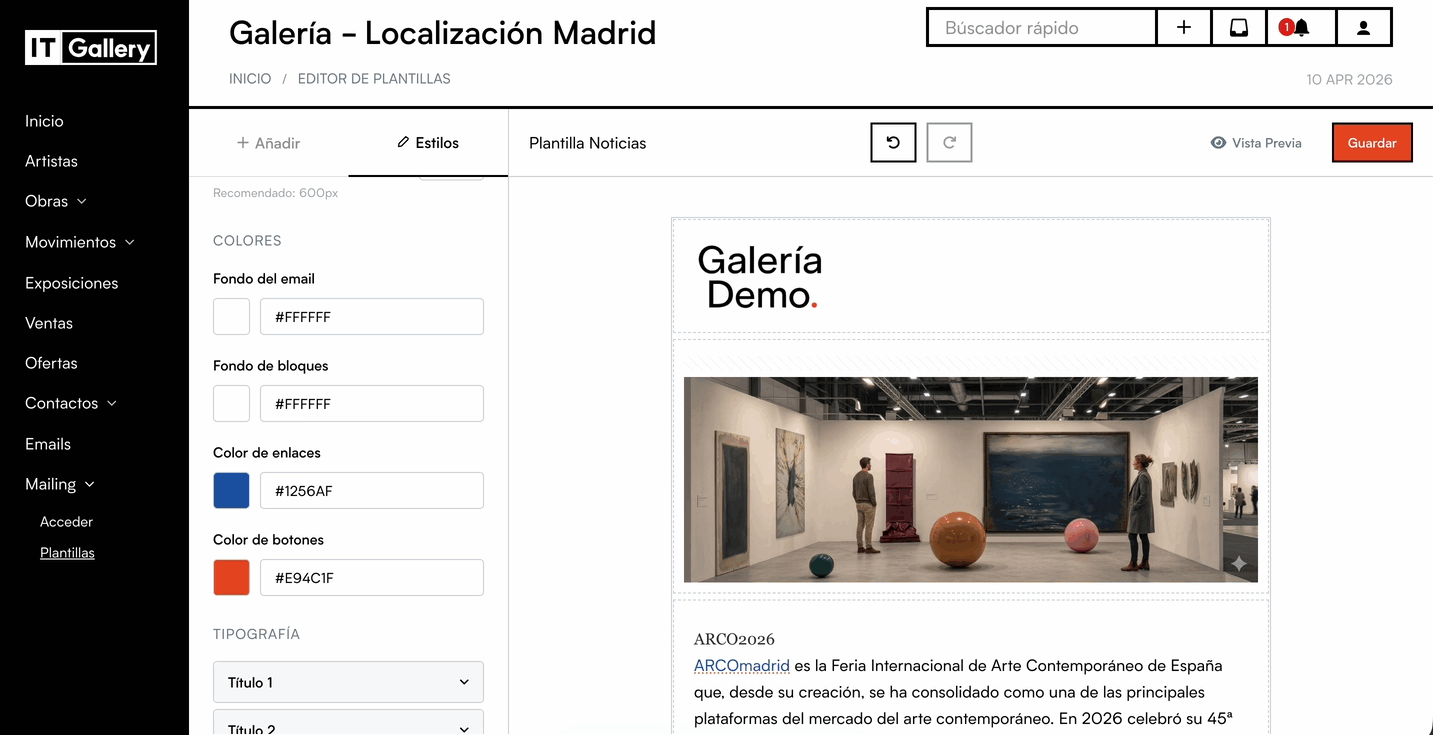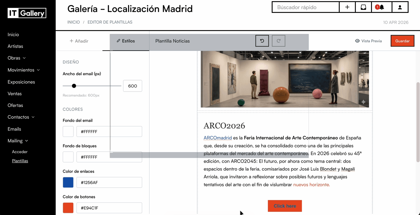 Al seleccionar un bloque de texto en una plantilla de email, se abre un menú de edición que permite modificar su contenido y formato. Aquí podrás encontrar las siguientes opciones: