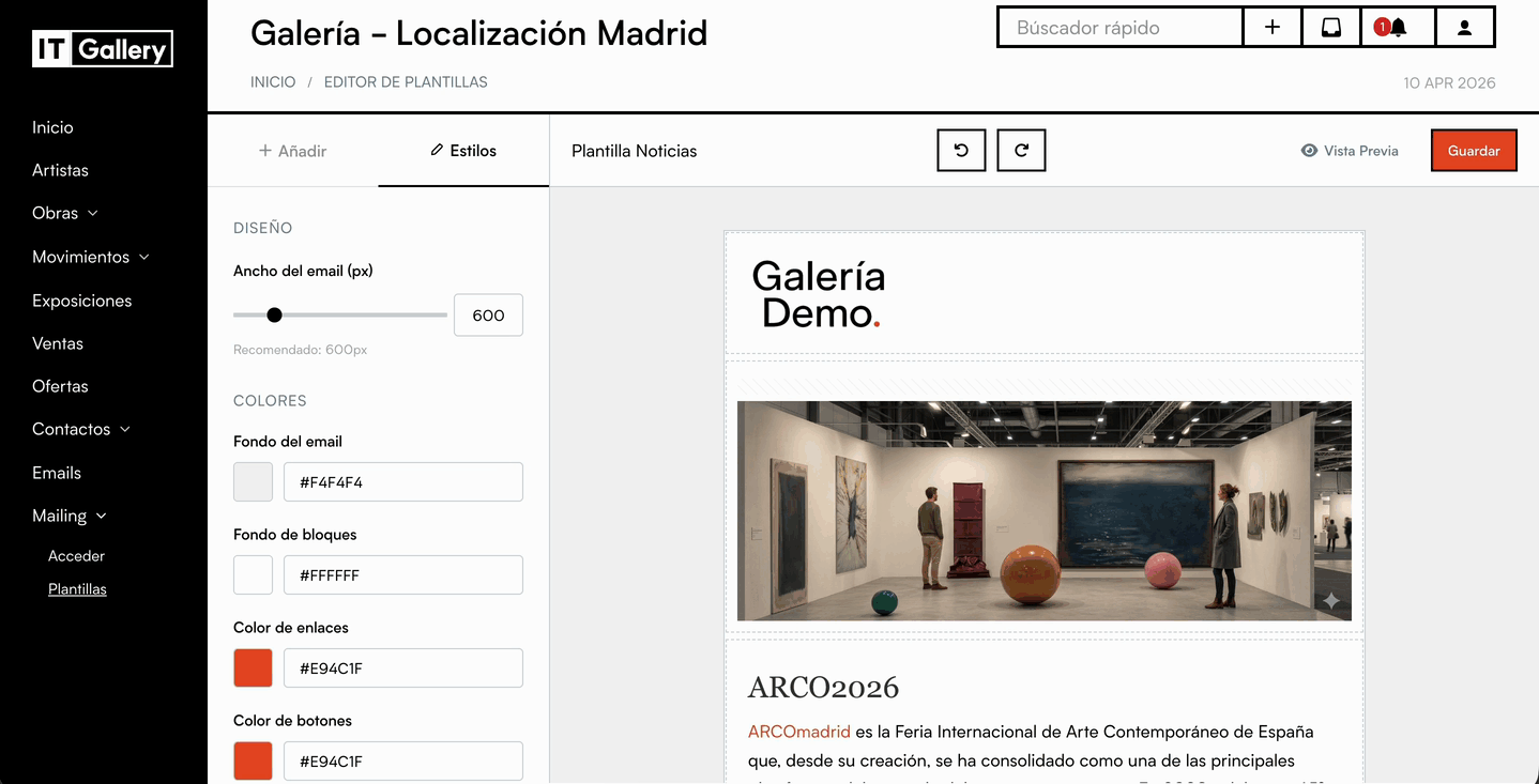 - Accede al editor de plantillas desde el módulo Mailing.
