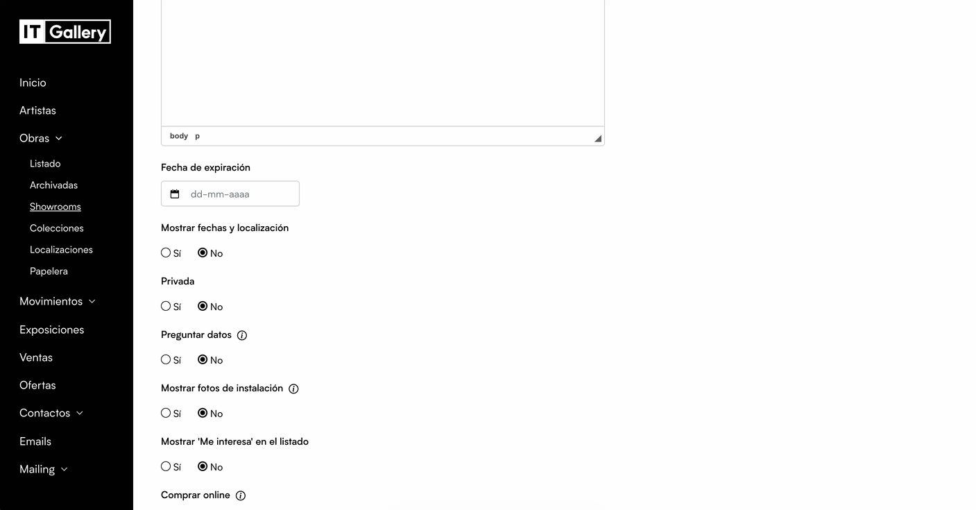 - Accede al módulo de Showrooms desde el menú principal.
